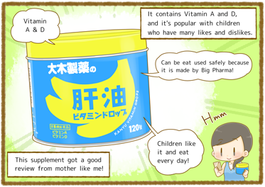 Keep nutirition balance by taking “cod-liver oil vitamin drops”! version