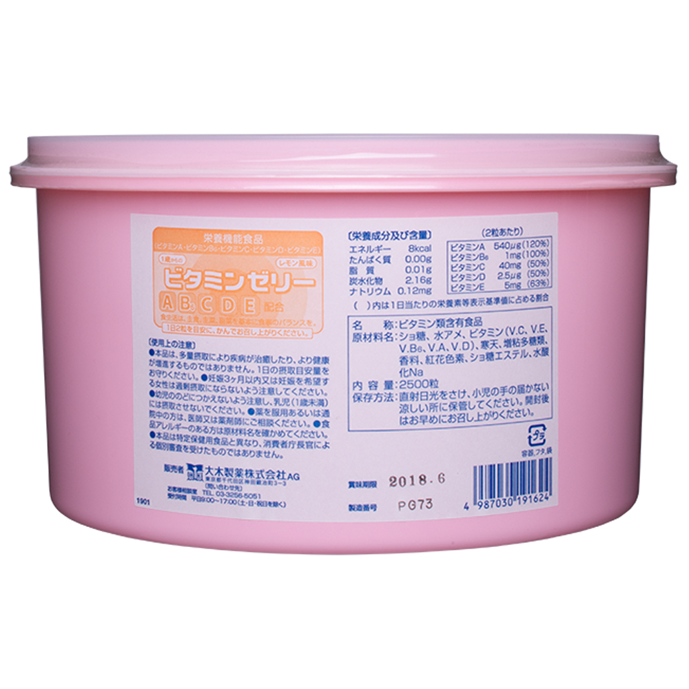 ビタミンゼリーいちご風味はビタミンA、C、D、Eを、レモン風味はビタミンA、B6、C、D、E
