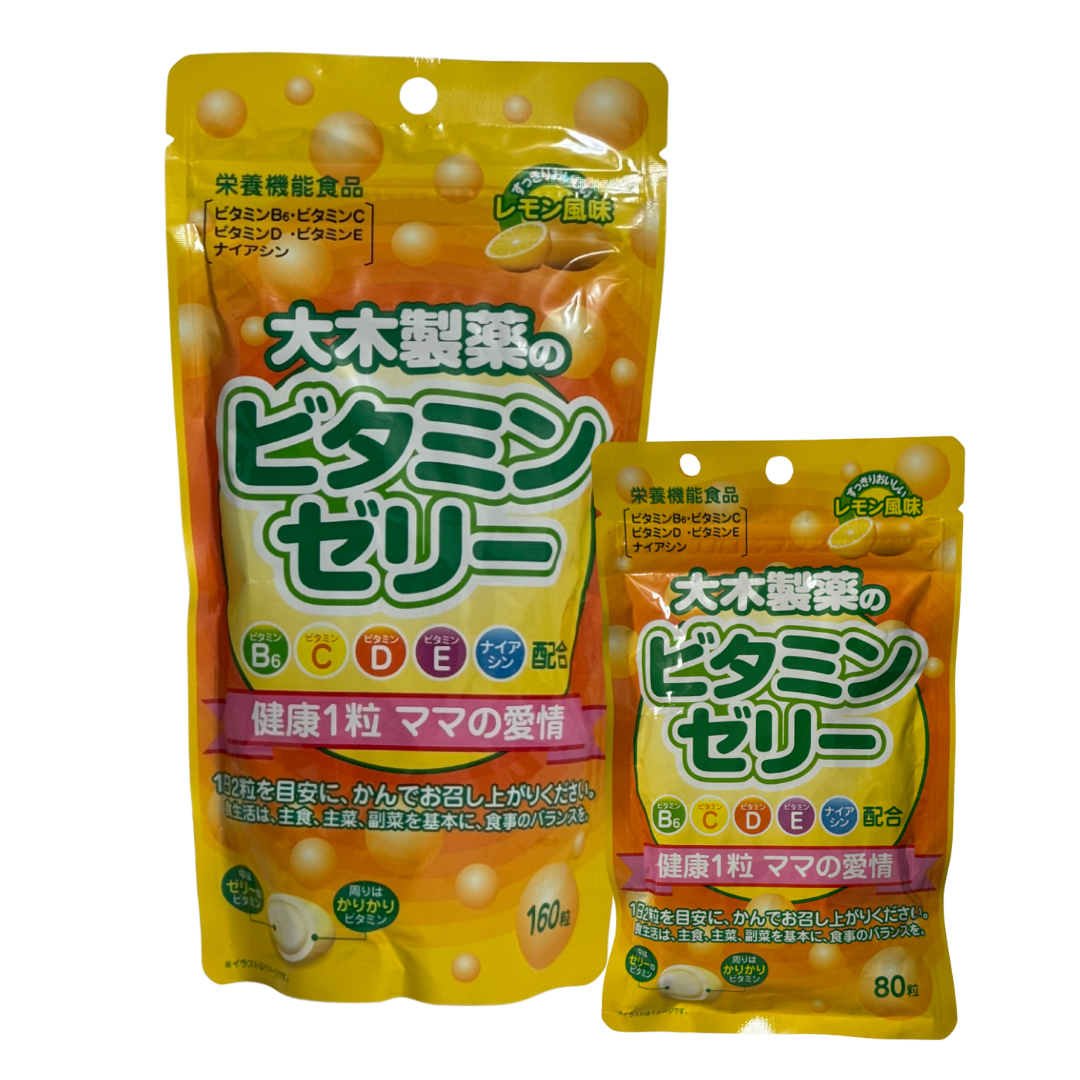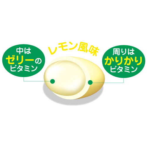 ビタミンゼリー レモン風味は、ビタミンB6、C、D、Eをバランス良く配合した寒天素材のゼリータイプの栄養機能食品で、甘酸っぱくてあとくちが良く、水なしで、かんで召し上がれます。